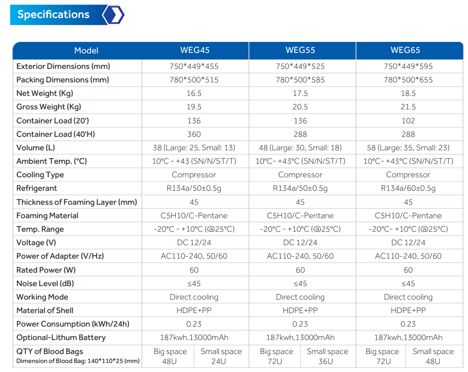 • Cold chain transportation of samples, reagents, blood products, specimens and pharmaceuticals.